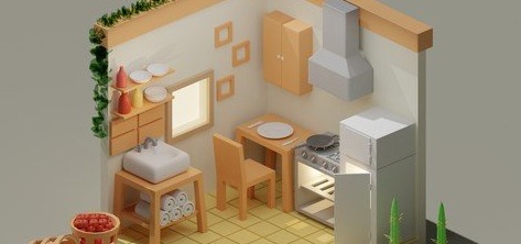 Isometric Kitchen Room Made In Blender